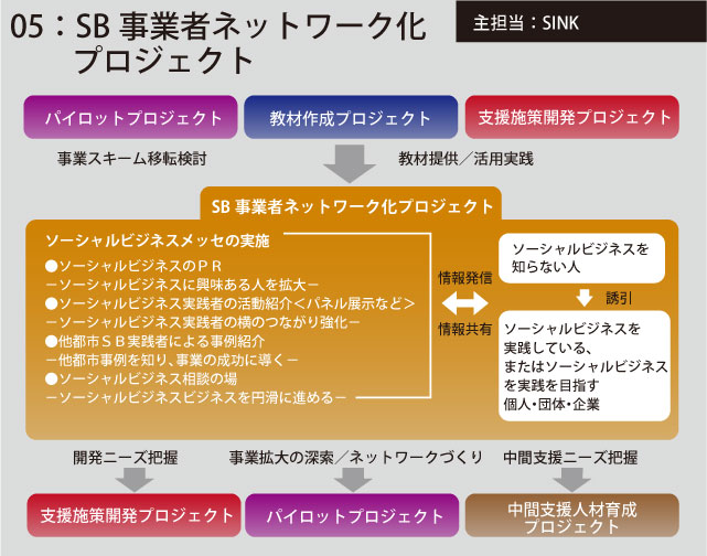 ソーシャルビジネスを広く周知し、ソーシャルビジネス関係者(個人・団体・企業等)の情報交流を図るため、ソーシャルビジネスメッセ(博覧会)を実施し、ソーシャルビジネスのネットワークを目指す。